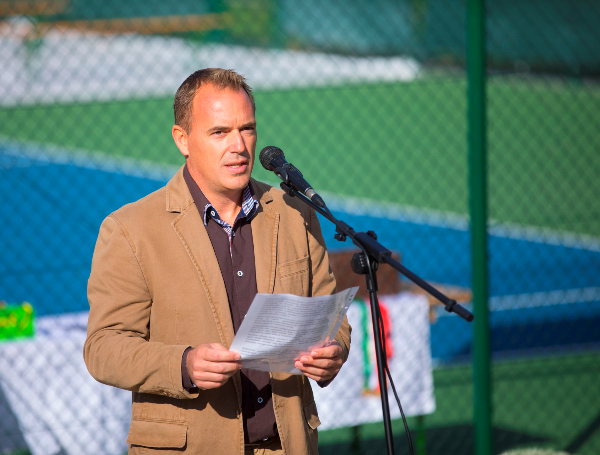 Bencsik János, tatabányai porgármester megnyitja a Tenisz Klub Házat.